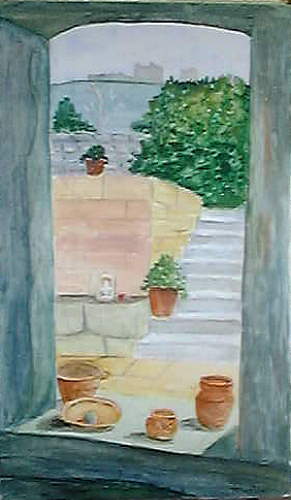Archway, Water Color on Paper, app. 7"x11", Betty Justin, Copyright 1994