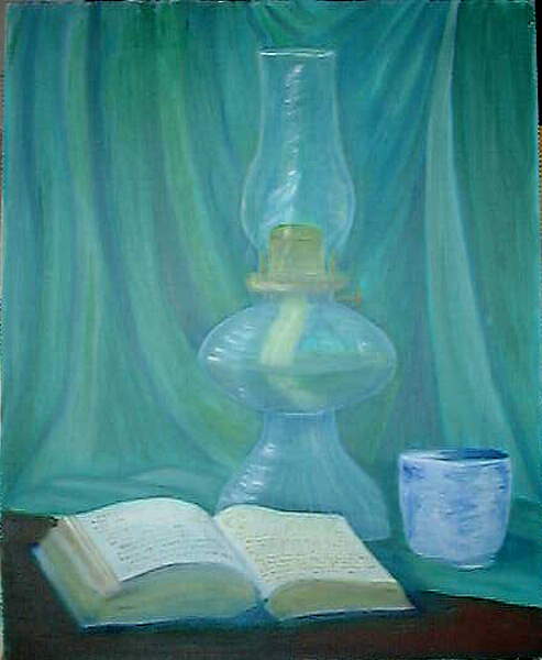 Lamp, Oil on Canvas, app. 16"x20", Betty Justin, Copyright 1973