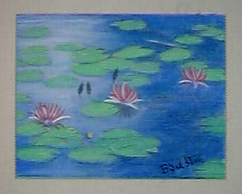 Lily Pond, Pastel on Paper, app. 12"x16", Betty Justin, Copyright 1995