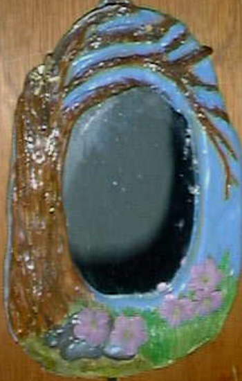 Mirror Tree, Glaze on Fired Clay with Mirrored Glass, app.4"x7", Betty Justin, Copyright 1995