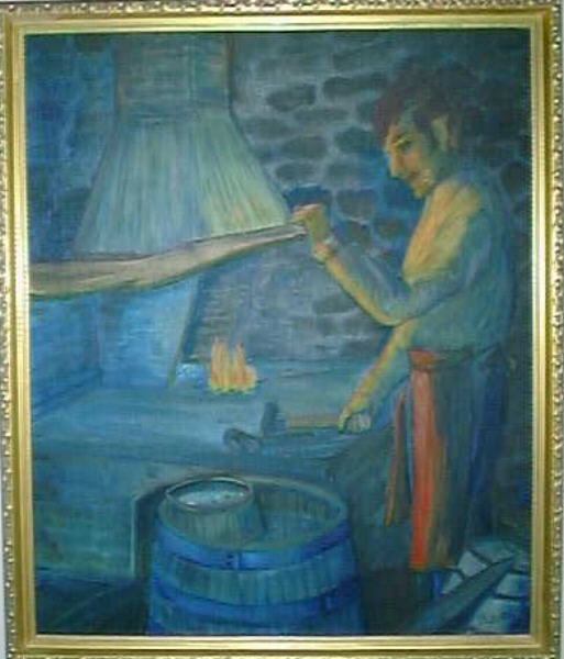 The Blacksmith Number Two, Oil on Canvas, 18"x24", Betty Justin, Copyright 1976