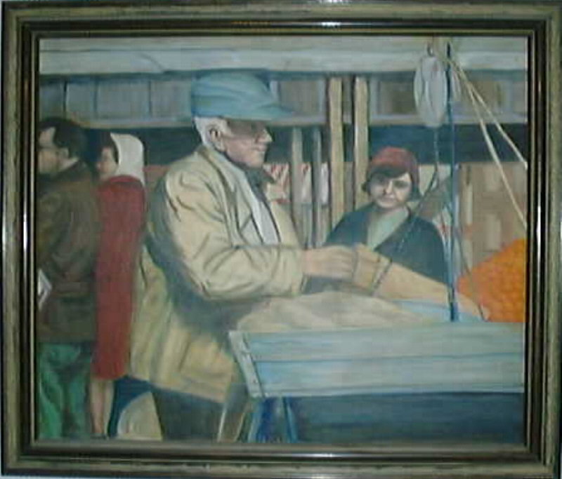 Potato Seller, Oil on Canvas, 20"x24", Betty Justin, Copyright 1974