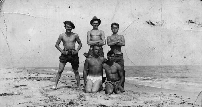 James F. Justin (left) and Men of Co 1295, Rehobeth Beach, Delaware, September 6th(?) 1936