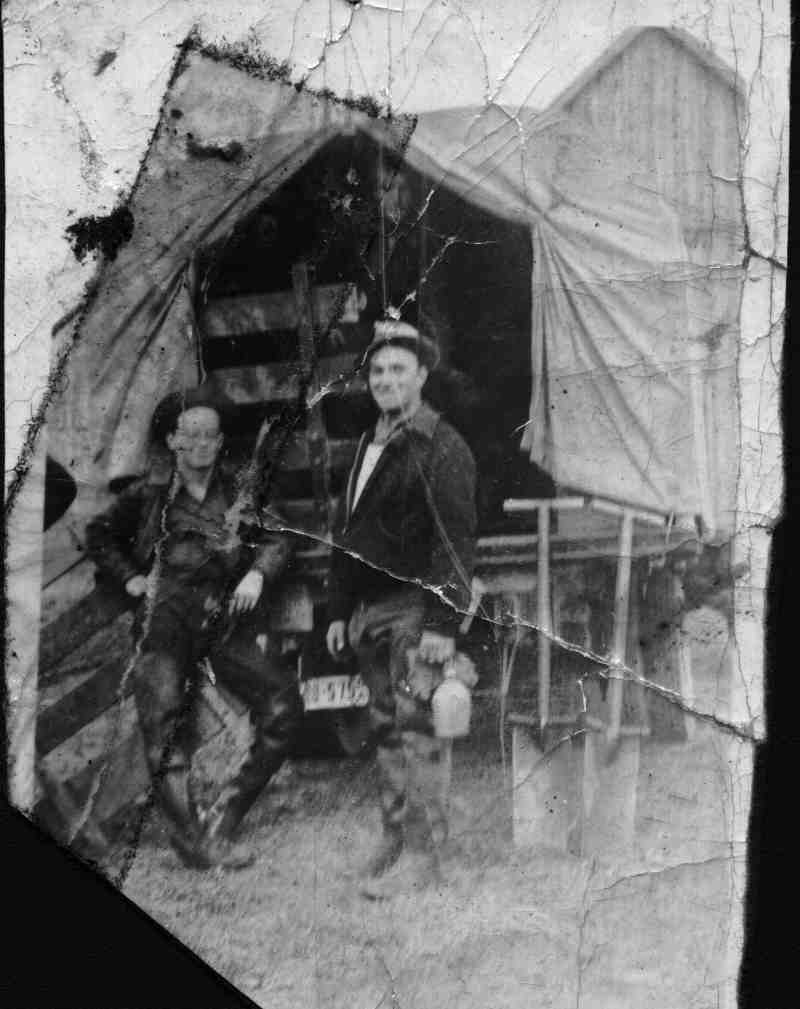 "Apparently how the system worked was that the camp commander would get money allotted to him for the camp budget. This guy decided that he would pocket some of it. He supposedly was taking money for himself and buying bad food, literally bad, for the guys in camp with the little that was left rather than using all of it for the good food we were supposed to be getting. Well the result was food that was horrible and not much of it either. The Captain's shenanigans weren't known then, but the food spoke for itself. Everyone got sick of it fast. Some wise guy started a protest. I'm sitting there minding my own business when out of nowhere everyone starts marching through camp shouting about the bad food. Well I hated the food too so I grabbed a pot and ladle and started marching with them and beating the pot with the ladle for noise, like a Little Drummer Boy. We had ourselves a right proper food riot going and I was out front beating the `drum' and leading.