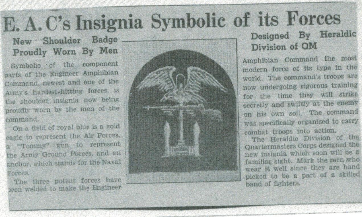 E.A.C.'s Insignia Symbolic of its Forces, Wartime Article on the Engineer Amphibian Command Patch