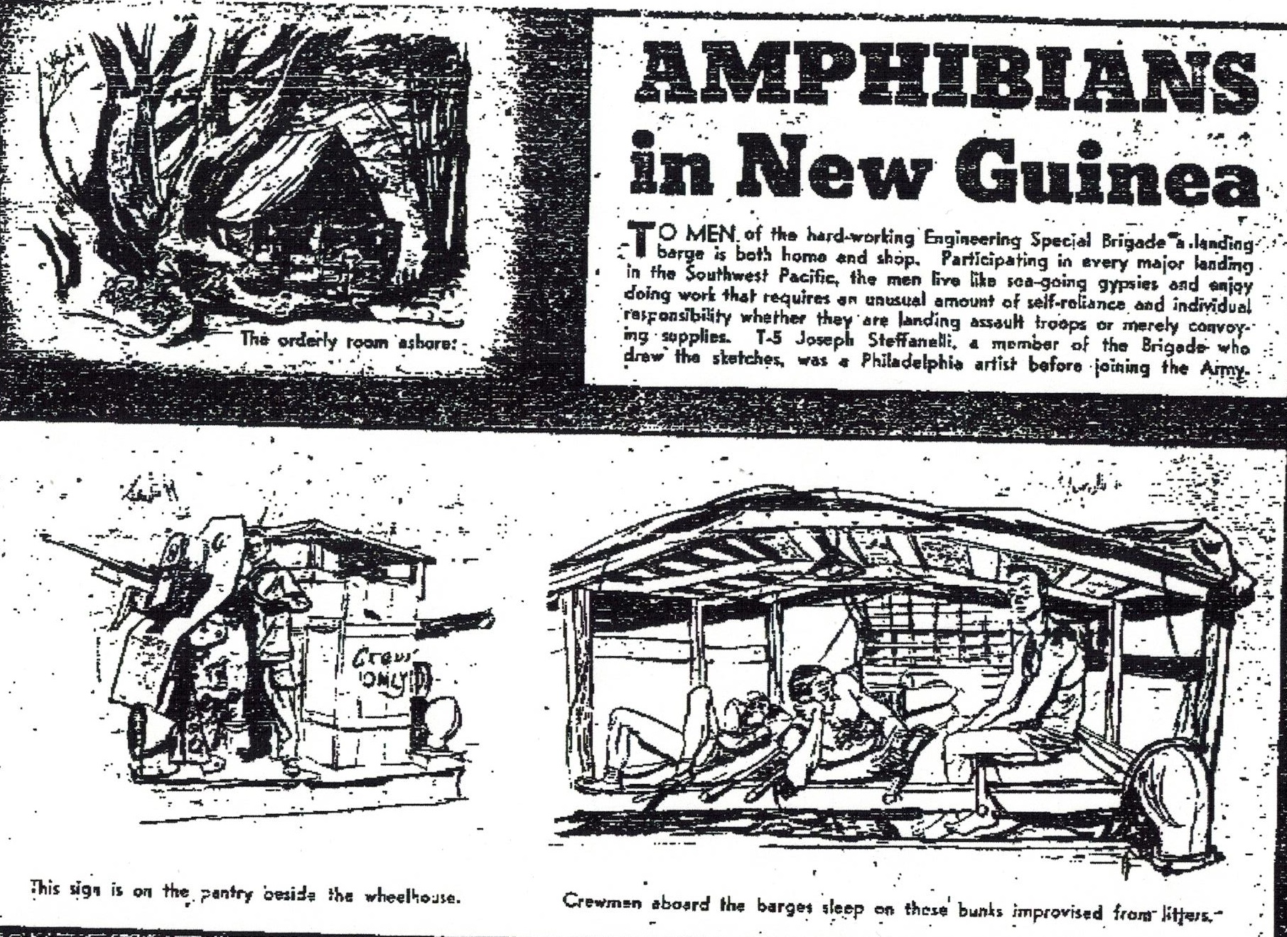 Amphibians in New Guinea, Yank Article, Illustrations by Joseph Steffanilli, from Yank, regarding C Co., 353rd EBSR