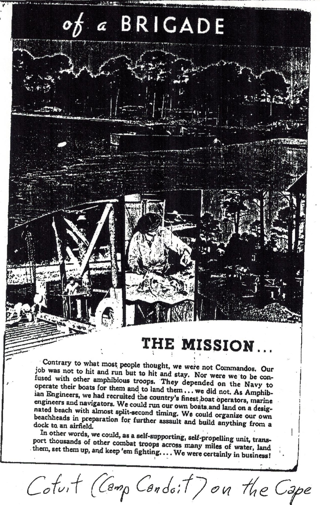 Camp Canduit, Yank Article, Illustrations by Joseph Steffanilli, from Yank, regarding C Co., 353rd EBSR