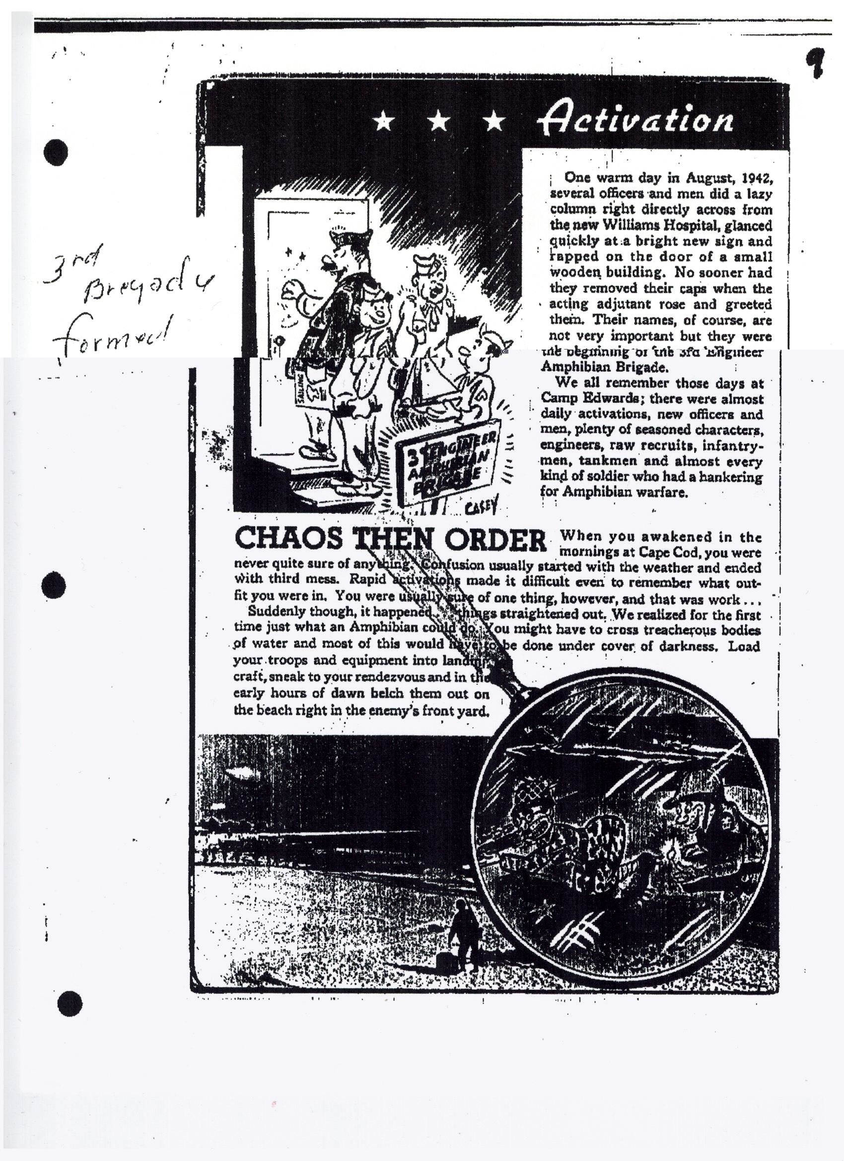 3rd Brigade Formed, Yank Article, Illustrations by Joseph Steffanilli, from Yank, regarding C Co., 353rd EBSR