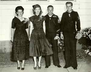 At Alameda, California, Had a blind date with a gal from Georgia that was living out there with her Parents. One thing led to another and we got married. We were married in the Chapel at Alameda, by Chaplin Henry Page White, on 11 April 1950 which happened to be my new wife's Birthday. Both for second time (and last). We are still a couple.