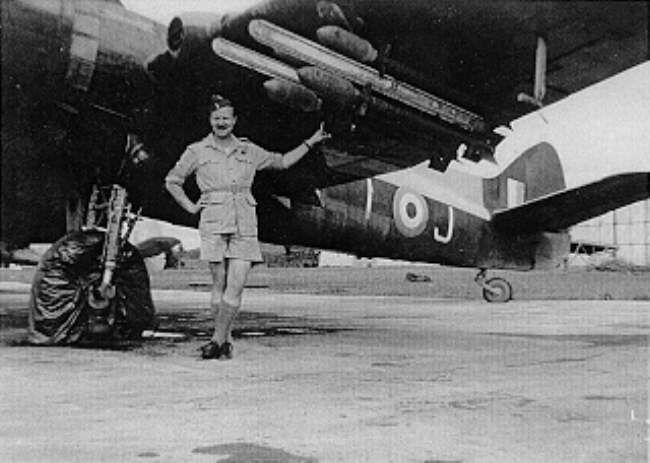 Me with a 45 Sqdn Beaufighter at Tengah 1949, ready loaded for a strike later that day, note the double banked 60lb. rockets, also on the other wing.
