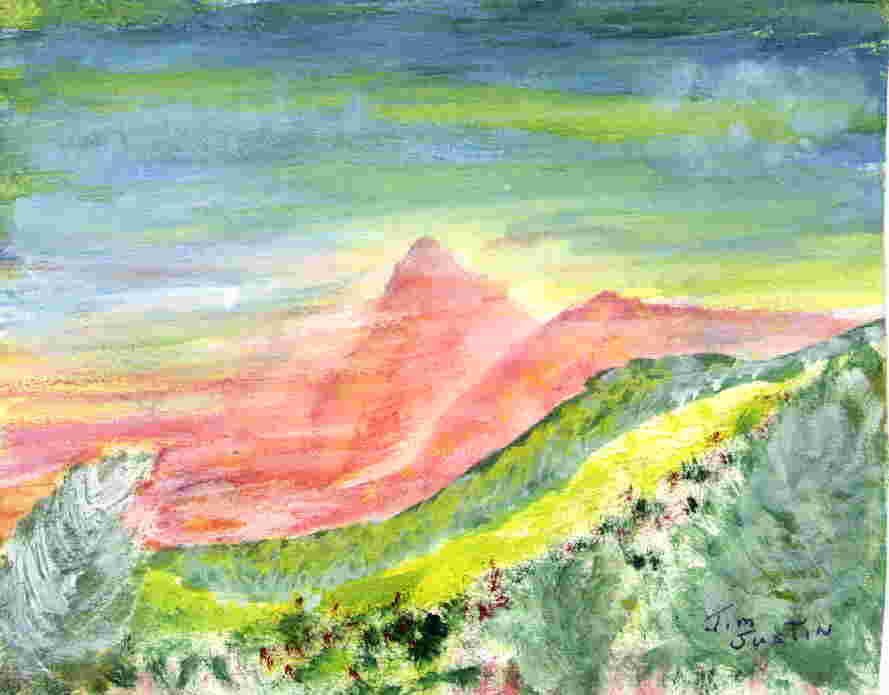 Mountains, Water Color on Paper, Copyright James F. Justin, 1990