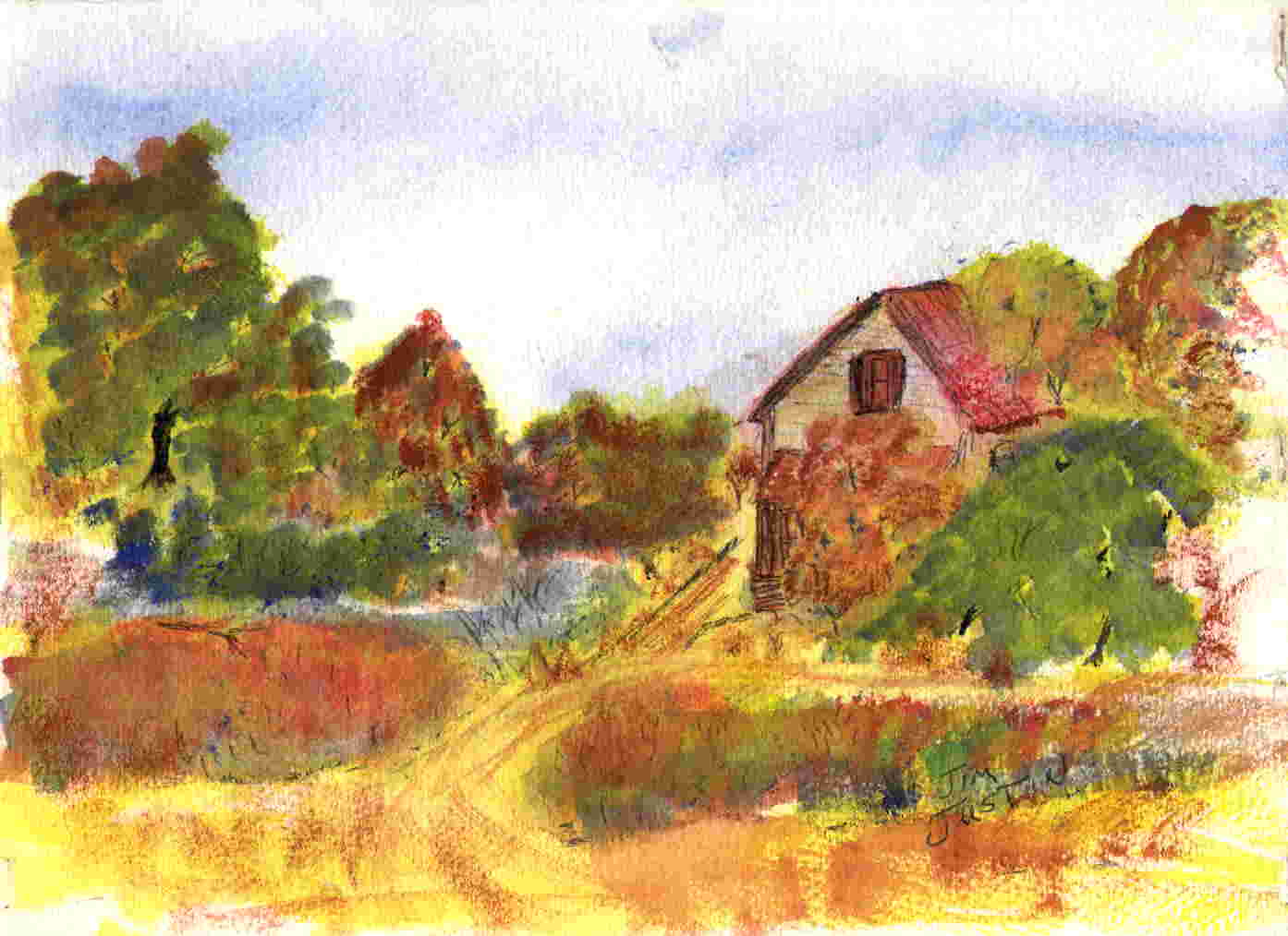 House in Woods, Water Color on Paper, Copyright James F. Justin, 1990
