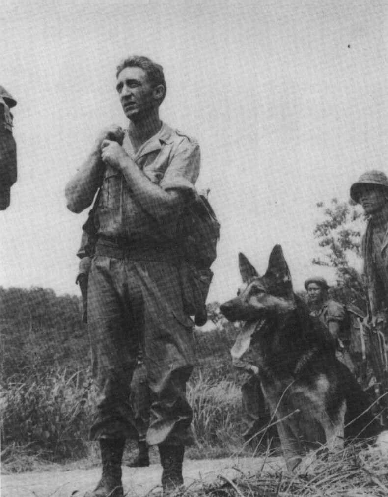 Pte. Jack Pickett, now deceased, waiting with Patrol dog "Jewel" to be