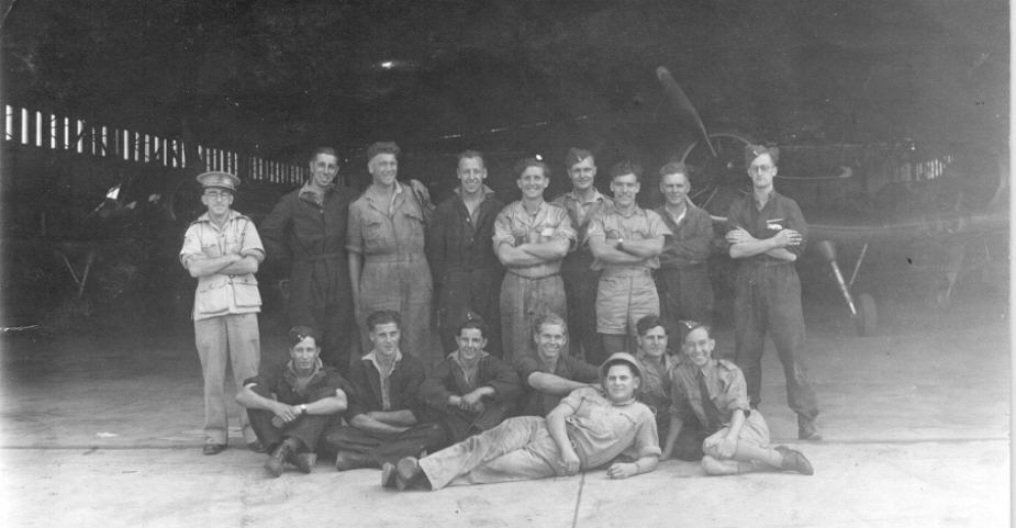 5th from the right Sgt Jock Brown , next to him in dark overalls Spike, centre sitting down with hat on and a very handsome chap Dac Dacre, ex apprentice like me , went back to UK with me and turned up on an operational 'drome later flying as Flight Engineer with a Polish or French Bomber Squadron flying Handley Page Halifax III bombers.