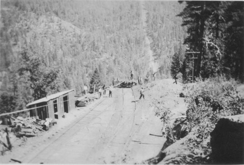 It appears they are hauling a flat bed rail car up this track to their work site. Presumably it is carrying equipment or materials for their work. Presumably a winch is just off the photo to the left