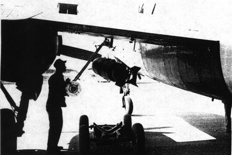 Loading Bomb onto Tigercat Man from Ordnance Section of Marine Service Squadron 33 winching bomb onto plane. Curator's guess as to type of aircraft Kimpo Airfield, Korean War, 1950 ----- Oliver R Smith orlesmith@lasercom. net Links Back To Air Force Photographs Back To Marine Photographs Back to Biography of Oliver Smith LINKS BACK TO JUSTIN ORAL HISTORY CENTER BACK TO JUSTIN ORAL HISTORY MARINE PHOTOGRAPHS PAGE JAMES F. JUSTIN CIVILIAN CONSERVATION CORPS MUSEUM For links and documents on CCC Please Share your Stories! E-mail me to share or discuss or with any questions!