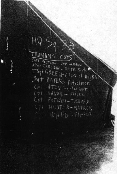 Truman's Cops Some Humor in Reaction to the terming of the war as a "Police Action". Po Hang Airfield, Korean War, 1951 ----- Oliver R Smith orlesmith@lasercom. net Links Back To Air Force Photographs Back To Marine Photographs Back to Biography of Oliver Smith LINKS BACK TO JUSTIN ORAL HISTORY CENTER BACK TO JUSTIN ORAL HISTORY MARINE PHOTOGRAPHS PAGE JAMES F. JUSTIN CIVILIAN CONSERVATION CORPS MUSEUM For links and documents on CCC Please Share your Stories! E-mail me to share or discuss or with any questions! Photograph Copyright 2000 Oliver Smith Webpage Copyright 2000 John Justin