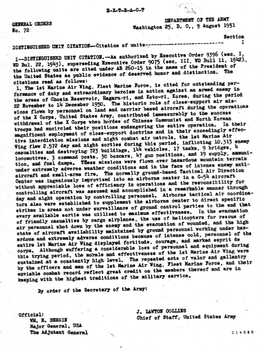 Unit Citation, First Marine Air Wing 9 August 1951 ----- Oliver R Smith orlesmith@lasercom. net Links Back To Air Force Photographs Back To Marine Photographs Back to Biography of Oliver Smith LINKS BACK TO JUSTIN ORAL HISTORY CENTER BACK TO JUSTIN ORAL HISTORY MARINE PHOTOGRAPHS PAGE JAMES F. JUSTIN CIVILIAN CONSERVATION CORPS MUSEUM For links and documents on CCC Please Share your Stories! E-mail me to share or discuss or with any questions! Photo Copyright Oliver Smith 2000 Webpage Copyright John Justin 2000