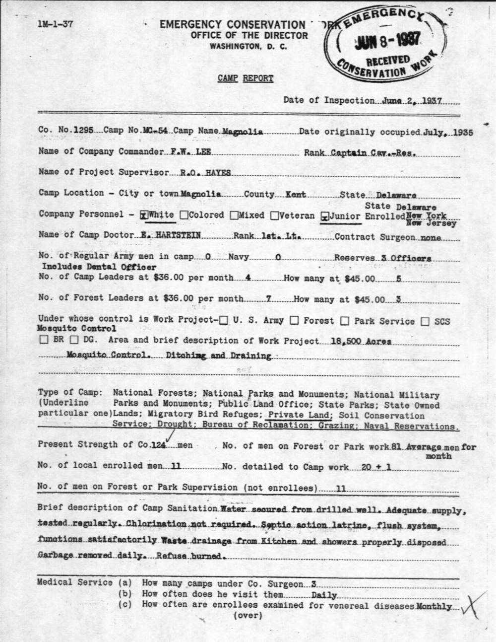James F. Justin, Co. 1295, Camp MC-54, Magnolia DE 1936-37