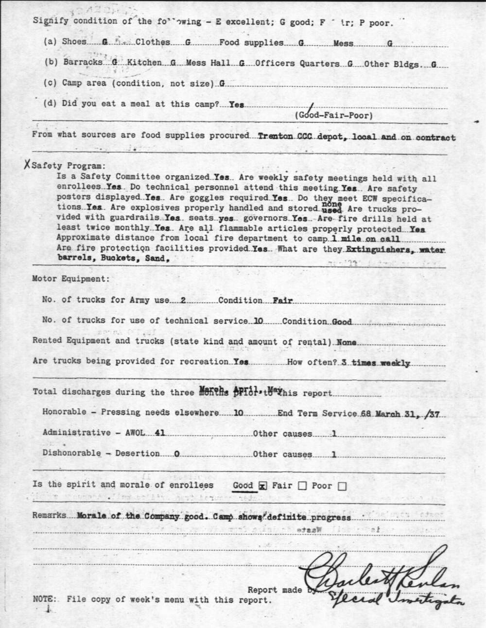 Camp Inspection Report, Page Two