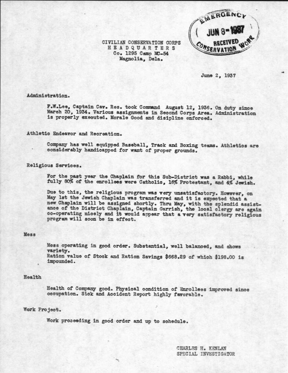 James F. Justin, Co. 1295, Camp MC-54, Magnolia DE 1936-37