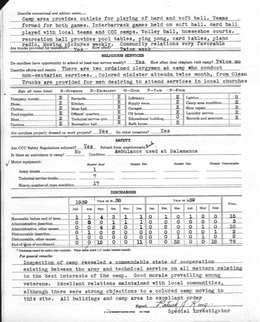 Camp Inspection Report, Page Two