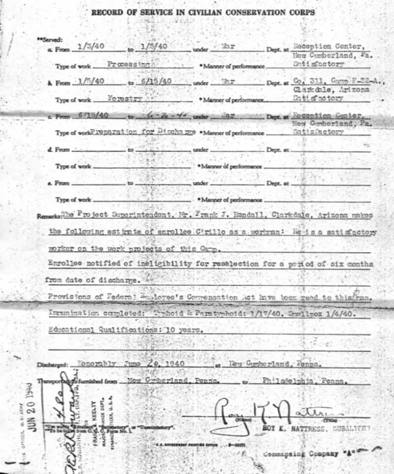 Back to the Biography of Nicholas M. Cirillo, CCC Man, Company 311, Camp F-32-A, Oak Creek Canyon, Clarkdale, Flagstaff, Sedona, Arizona