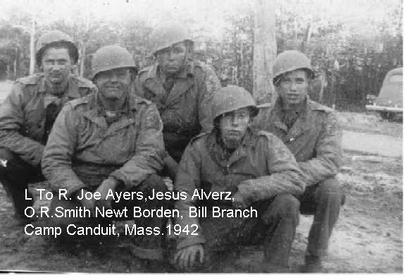 Left to Right Joe Ayers, Jesus Alverz, O.R. Smith, Newt Borden, Bill Branch of Co. C, 543rd EB&SR