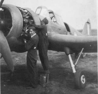 So far it would seem that all I did was visit and enjoy but this was a pilot training drome, flying went on 24 hours a day and our days were spent servicing the 104 Miles Master planes on the daily inspections. The Masters was made of wood and plywood, much like the Mosquito of later and much greater fame. The Miles Master was an advanced training aircraft that trained pilots in fast single engine 'plane management before they became operational on Hurricanes or Spitfires. Mark 1 Masters were fitted with Rolls Royce Kestrel engines ( fore runner of the Merlin) some of these were even equipped as fighters with four Browning guns during the panic of 1940, Mark 2 Masters were fitted with Bristol Mercury Radial engines and Mark 3 Masters had Pratt and Whitney Junior Twin Wasps.