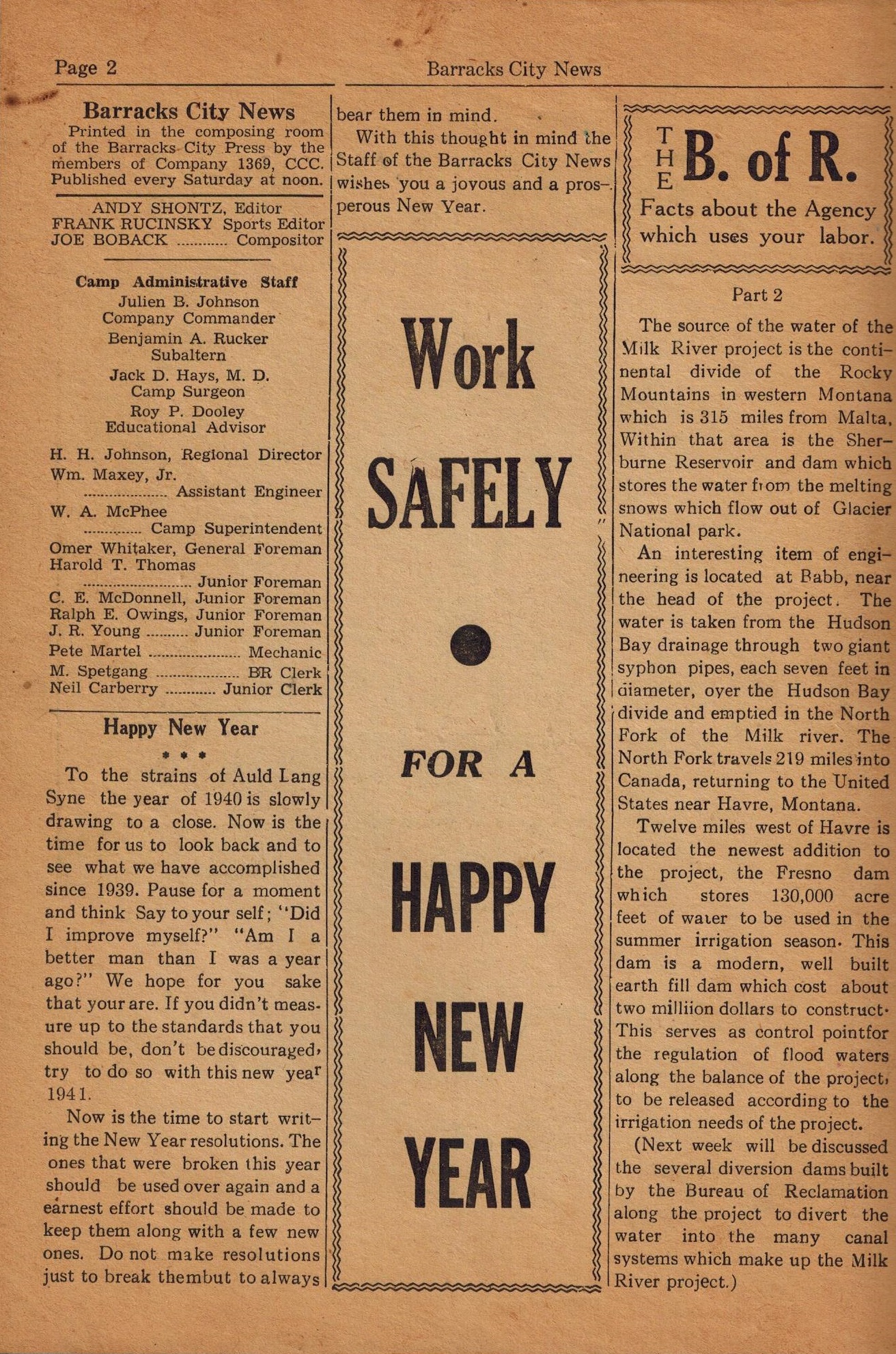 Company 1369, Camp BR-69, Malta, Montana, Campnewspaper, Barracks City News