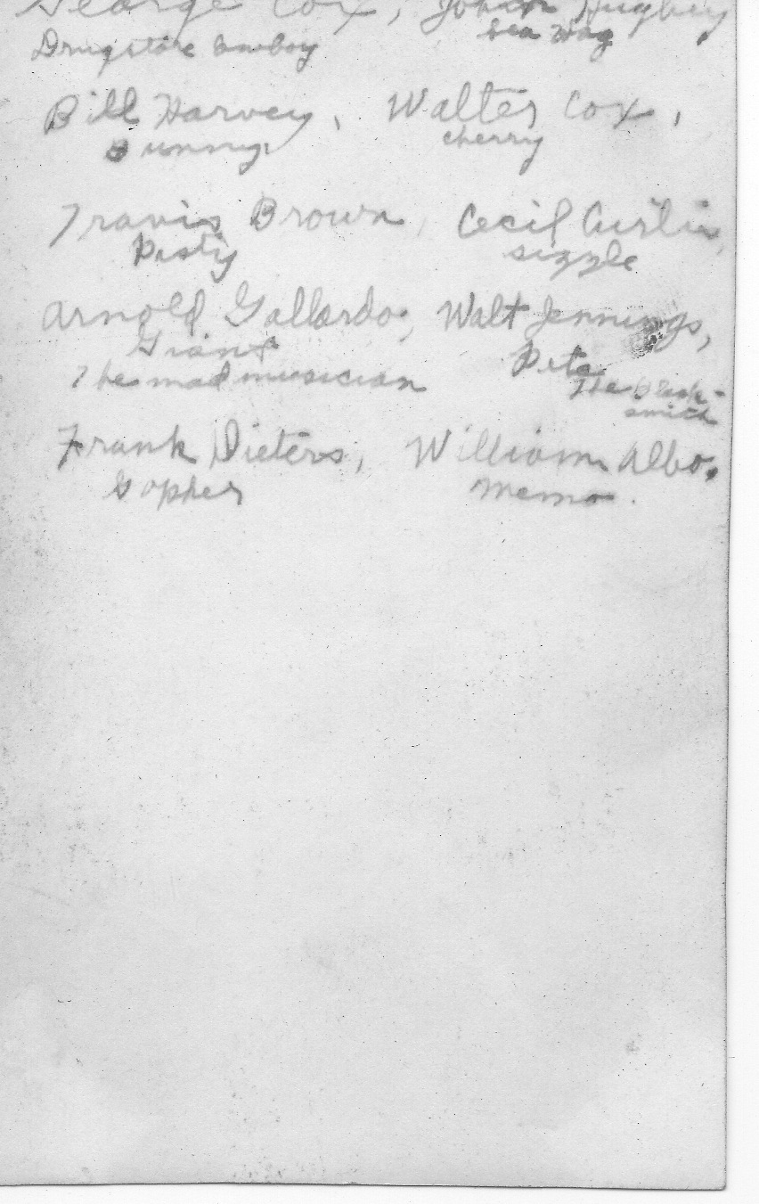 Back of Group Photo Above with Names and Nicknames, Company 1838, Tucson, AZ