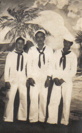 He lost half his finger on one hand while trying to release a mine but he didn't get it recorded correctly and he had no record of it when he came home, so no purple heart no nothing. His name is Jesse Ruben Moreno from Dallas, Texas. He a light skinned Mexican American fellow that never really had an accent other than his Texas one and stands about 5 foot 3 inches and at that time would fight anyone. My dad is now 82 and still going strong. He still can remember the Japanese pilot's faces as they passed by their ship on the way to hit a bigger one.