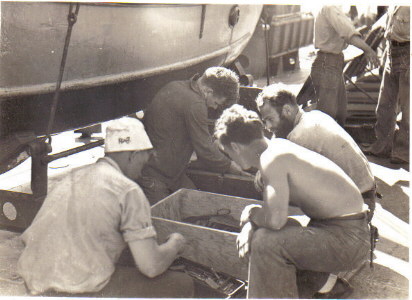 Below Photographs of Men of the USS Chandler, in Port and On Ship