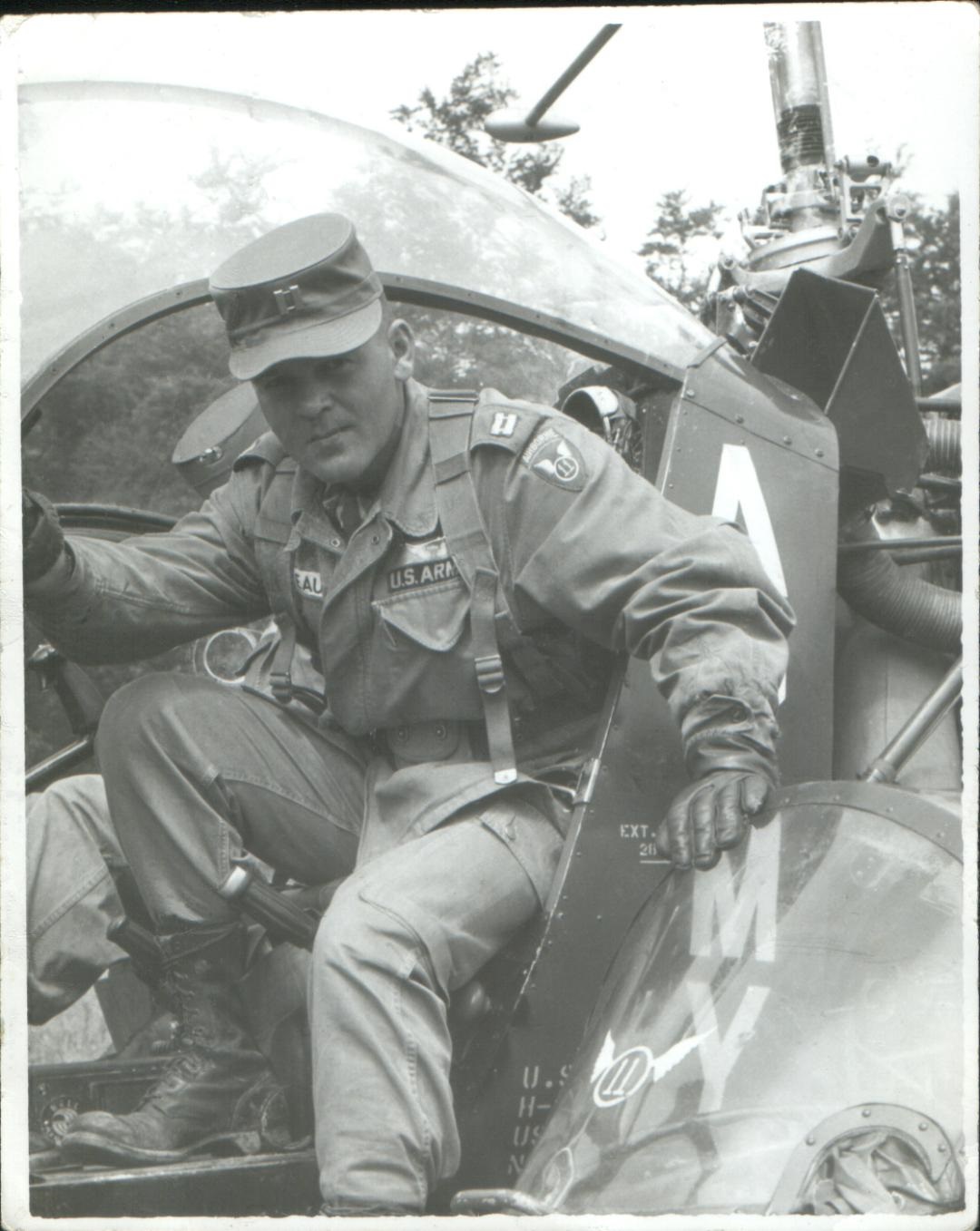 Captain Frank W. Nadeau, Jr.m 11th Airborne, Germany, 1956. At the time the photo was taken was probably in 1956-57 in Bavaria, near Munich, Germany. The helicopter was an OH-13E. My dad was a captain at the time but retired in 1979 as a colonel.